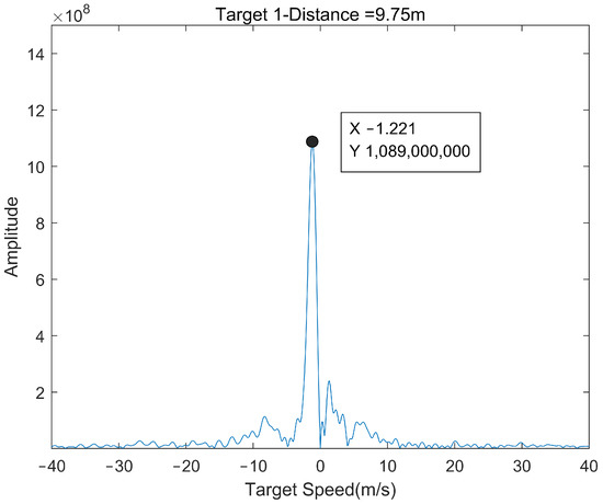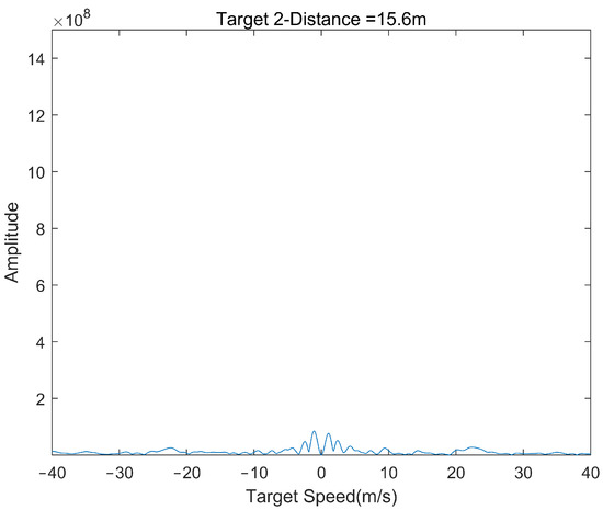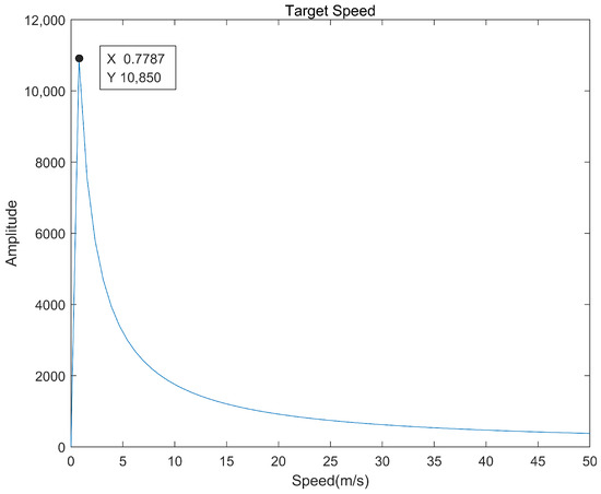 In Figure 12, in order to fully show the process of the target moving perpendicular to the LOS of the radar system, we retained the stationary target and the moving target when it is completely perpendicular to the LOS of the radar system. The speed of the target varies with the relative position between the target and the radar and is far less than the true speed of the target. When the moving direction of the target is perpendicular to the LOS direction of the radar, it can be seen that the system cannot estimate its velocity.