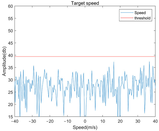where is the noise part after the cross-correlation between and . Due to the characteristics of complex Gaussian noise itself, is still an independent and identically distributed complex Gaussian noise. denotes the signal frequency offset due to time delay. After the fast Fourier transform (FFT), Doppler compensation, and the clutter processing algorithm mentioned above for the mixed signal, there will be a peak value at the corresponding position of the target. The detection problem here considers using the traditional constant false alarm rate (CFAR) detector for target detection, and the decision criteria of the detector are as follows: