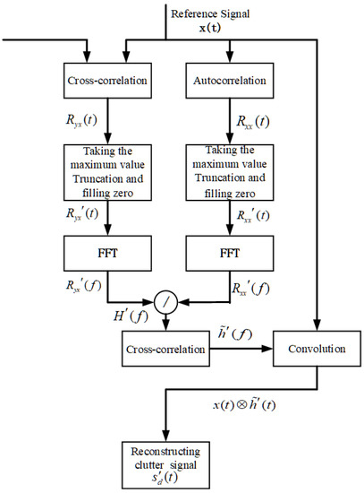 It is worth noting that the clutter background in the experimental environment usually does not change dramatically with time. Therefore, considering the algorithm complexity and computation, the deconvolution of the output from the clutter map is only carried out after a certain number of iterations or in the initial data. The specific steps of deconvolution processing in the algorithm are shown in Figure 7. Assuming that the transmitted signal is , the received signal of the channel can be expressed as: