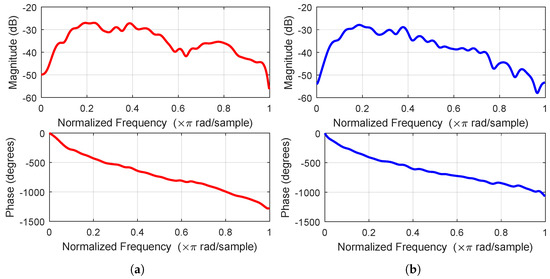 Figure 7. Frequency response: (a) shows the result of primary path. (b) shows the result of secondary path.