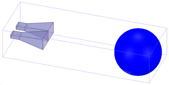 To further demonstrate the effectiveness of the proposed equation, the comparison with the near-field RCS simulation model is adopted. The model shown in Figure 5 is composed of the transmitting and receiving antenna with 10 GHz and detected targets. The full-wave simulation software is used to analyze this model.