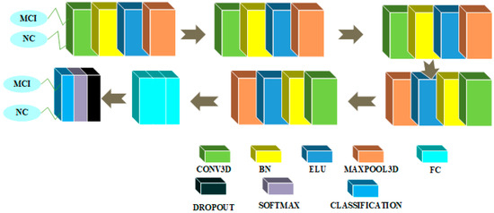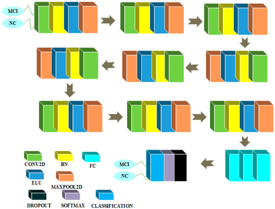 The CNN architectures for the binary classification between MCI and NC classes are given in Figure 8 and Figure 9.