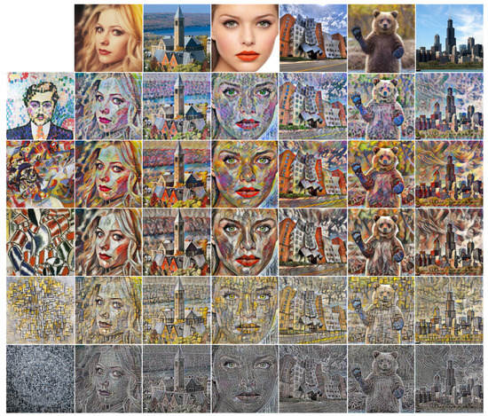 - Gatys, L.A.; Ecker, A.S.; Bethge, M. Image Style Transfer Using Convolutional Neural Networks. In Proceedings of the IEEE Conference on Computer Vision and Pattern Recognition (CVPR), Las Vegas, NV, USA, 26–30 June 2016. [Google Scholar]