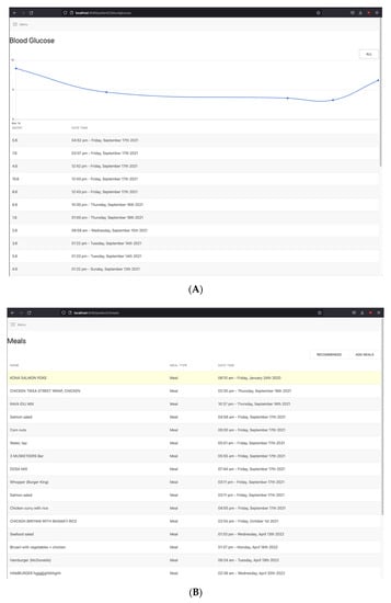 Research has highlighted that having a balanced diet is a critical factor when it comes to successful diabetes management []. Hence, it is crucial to have a strong recommendation system in place that can lead to improved self-management. Currently, while there are many stand-alone recommendation systems available, they are yet to be adapted to the health context (e.g., diabetes self-management). If they were to be adapted to a health context, a study highlights the importance of using an iterative design cycle that will allow the developers to better understand the domain and come up with an accurate evaluation process that will consider data security, privacy, ethical implications, etc., and understand the inception—which refers to methods used to conceive the recommender system in a health context []. For example, a diabetes self-management nutrition recommendation system needs to consider things such as blood sugar level, fitness history, and medication before considering the “normal” factors for a nutrition recommendation system, which would be calories, carbs, fat content, etc.