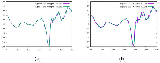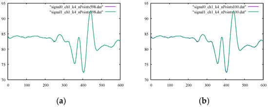 Examining the metrics presented in Table 2, we can clearly see that we could achieve smoother signal curves by decreasing the number of control points used for creating the smooth curve. This trend could also be confirmed from the outputs given in Figure 3a–d.