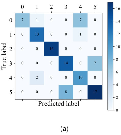 From the classification results, the classification of Category 1 (Ulva pertusa) is correct. There are 20 mismatches in Category 2 (Sargassum thunbergii) and in Category 3 (Sargassum fusifarme). There are 12 mismatches in Category 4 (Chondrus ocellatus), category 5 (Grateloupia filicina C. Ag.), and category 6 (Chondria crassiaulis Harv.). The overall accuracy is 73.98%, which further confirms the difficulty of spectral data in processing when classifying members of the same seaweed species.