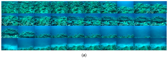Not all the data collected by ROV can be initialized in the ORB-SLAM2 algorithm. In order to compare different cases, two video data with different image quality were selected, which were collected at two locations with different water qualities. Among them, the water quality of the data collected on the coral reefs in the shallow sea is relatively clear, and the data set is named Test 1; the water quality of the data collected near the wharf is turbid, and the data set is named Test 2. Firstly, the experimental data was preprocessed; the ORB-SLAM2 algorithm cannot process the video data directly, and the video was decomposed into images by the frame rate. The results are shown in Figure 4 and Table 2. Since the frame rate is 25 frames per second, the number of decomposed images is not strictly equal to the product of time and frame rate, and the number is normal in the range of ±13 frames.