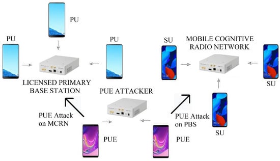 In this spectrum sensing process, a common type of attack that affects the performance of the MCRN is the primary user emulation (PUE). In this attack, a PUE attempts to mimic a PU transmission to obtain access to a specific frequency band by injecting a false PU signal in the specific frequency selected to make other SUs release their spectrum frequency [