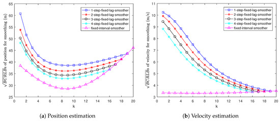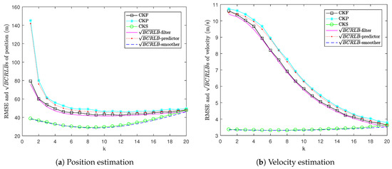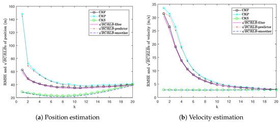 - Simandl, M.; Kralovec, J.; Tichavsky, P. Filtering, predictive, and smoothing Cramér-Rao bounds for discrete-time nonlinear dynamic systems. Automatica 2001, 37, 1703–1716. [Google Scholar] [CrossRef]
