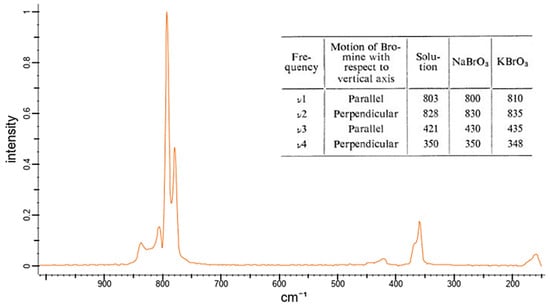 - Radhakrishna, S.; Karguppikar, A.M. Raman Spectra of Irradiated Alkali Bromate Crystals. J. Phys. Soc. Jpn. 1973, 2, 578–581. [Google Scholar] [CrossRef]