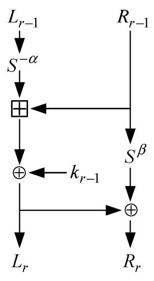 The input at the round is represented as , in the same way. The output is represented as , the round key is represented as , and the shift parameter is . The round function can be defined by: