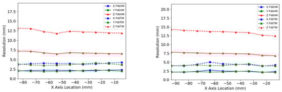 | Resolution at Z = 20 mm | FWHM | FWTM | FWHM | FWTM |