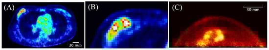 - MacDonald, L.; Edwards, J.; Lewellen, T.; Haseley, D.; Rogers, J.; Kinahan, P. Clinical Imaging Characteristics of the Positron Emission Mammography Camera: PEM Flex Solo II. J. Nucl. Med. 2009, 50(10), 1666–1675. [Google Scholar] [CrossRef]