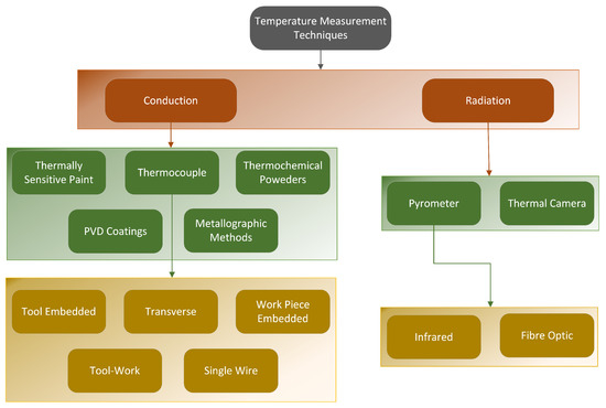 Leonidas, E.; Ayvar-Soberanis, S.; Laalej, H.; Fitzpatrick, S.; Willmott, J.R. A Comparative Review of Thermocouple and Infrared Radiation Temperature Measurement Methods during the Machining of Metals. Sensors 2022, 22, 4693. https://doi.org/10.3390/s22134693