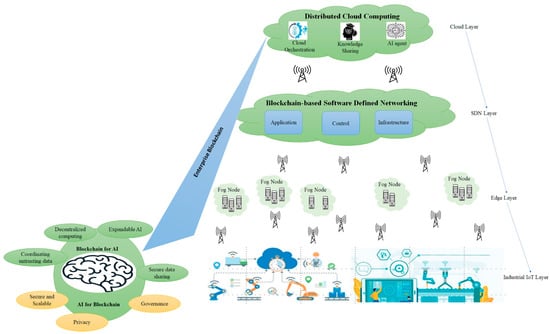 Software-Defined Networking (SDN) and Network Functions Virtualization (NFV) are emerging and considered new ways of designing, building, and operating networks. These two complementary technologies can support data transition between edge nodes and cloud computing. This layer improves the dynamism of the network. For example, it is possible to change the path through which data flows between the cloud computing layer and the edge computing layer. BSDN uses a hash function instead of heavy cryptography algorithms. Therefore, BSDN can improve flexibility and performance compared to traditional SDN. This layer contains 3 planes, namely, the application plane, control plane, and data plane. It is also coupled with blockchain technology.