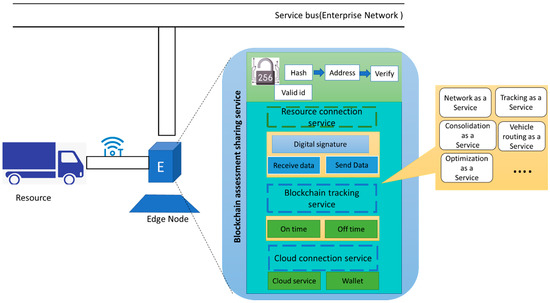 As shown in Figure 3, the structure of the blockchain asset sharing service (BASS) is presented. BASS has three main responsibilities. First, it provides connectivity and data integration between the cyber and physical environment. Secondly, it is responsible for tracking and tracing the resource. Therefore, the resource owner and services requester can have tracking information. The resource tracking facilitates the pay-as-you-go method for each service and also improves the trust between parties. Thirdly, BASS provides a real-time connection with the distributed cloud layer via BSDN; it has two modules, including cloud service and wallet. Cloud service communicates with the cloud network and sends/receives transactions to/from the network. Connecting with the cloud environment enables cloud services, for example, the vehicle of carriers that can use vehicle routing as a service. Also, each node has a wallet on the blockchain network. The potential transaction/messaging services need to use this wallet account.
