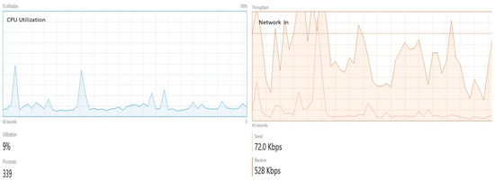 Figure 11 denotes the monitoring data. In this figure, we show the results of two main KPIs of the OL environment. These indicators include CPU utilization and network in. These results show that the OL can support real applications without status failed issues and require less CPU utilization. Therefore, the developed network has an acceptable level of scalability for big data support.
