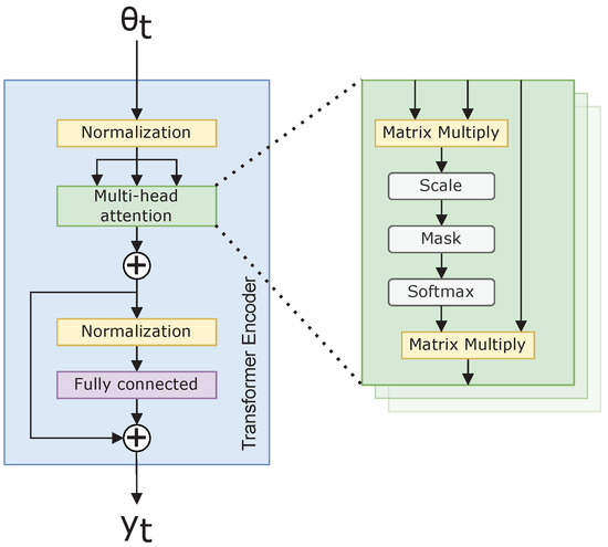 normalizes the data such that . Multi-Head Attention (MHA) calculates Equation (12) multiple times to permit different attention interconnections with the same data. MHA allows for multiple relations to be found within the same layer in the Transformer.