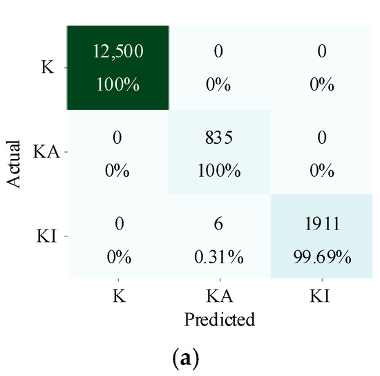 Confusion matrix with (a) IFKNMD-CNN and (b) IFKNMD-1DCNN.
