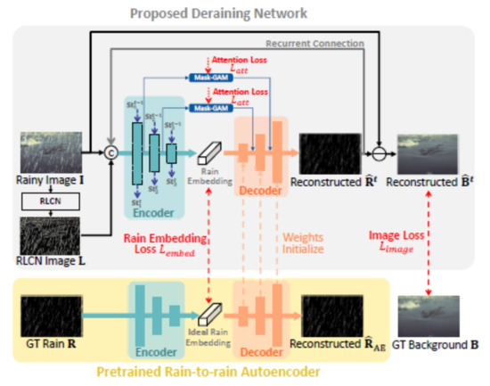 - Li, Y.; Monno, Y.; Okutomi, M. Single Image Deraining Network with Rain Embedding Consistency and Layered LSTM. In Proceedings of the IEEE/CVF Winter Conference on Applications of Computer Vision, Waikoloa, HI, USA, 4–8 January 2022; pp. 4060–4069. [Google Scholar]