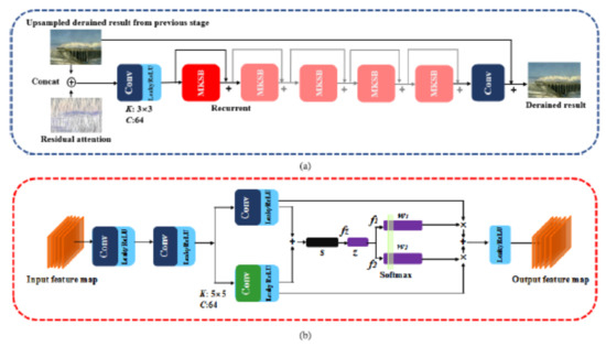 - Ren, D.; Zuo, W.; Hu, Q.; Zhu, P.; Meng, D. Progressive image deraining networks: A better and simpler baseline. In Proceedings of the IEEE/CVF Conference on Computer Vision and Pattern Recognition, Long Beach, CA, USA, 16–17 June 2019; pp. 3937–3946. [Google Scholar]