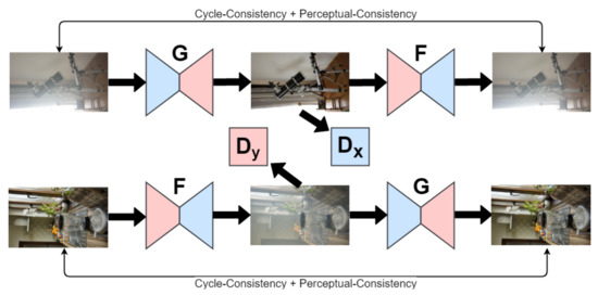 - Liu, W.; Hou, X.; Duan, J.; Qiu, G. End-to-end single image fog removal using enhanced cycle consistent adversarial networks. IEEE Trans. Image Process. 2020, 29, 7819–7833. [Google Scholar] [CrossRef]