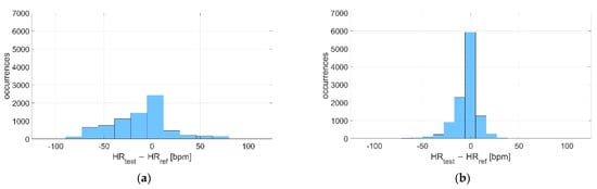 Finally, the mean absolute percentage error (MAPE), as defined in (1), was evaluated, where HRtest is the HR measured by the tested device—smartwatch type, whereas HRref is the one recorded by the reference instrument.