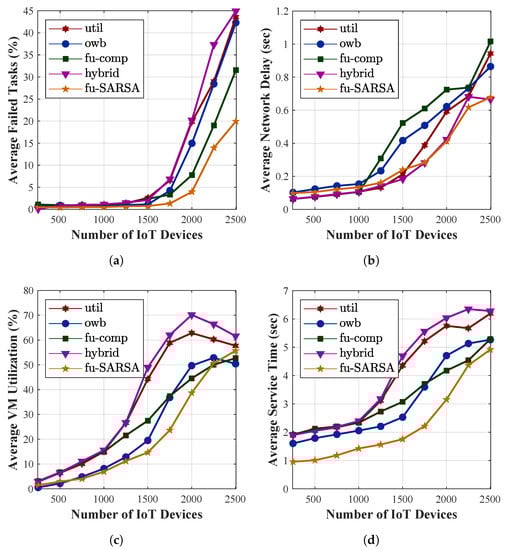 - To model the incoming task requests, we consider four groups of applications: healthcare, AR, infotainment, and compute-intensive applications. They have dissimilar characteristics, such as their task length, delay sensitivity, and resource consumption. We compare and evaluate the results with four opponent algorithms, considering typical performance aspects such as the rate of task failure, service time, and VM utilization.