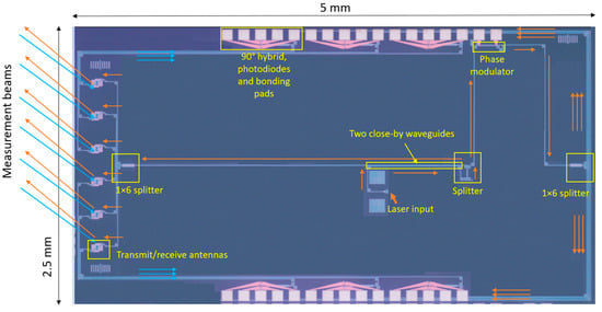 - Li, Y.; Zhu, J.; Duperrron, M.; O’Brien, P.; Schuler, R.; Aasmul, S.; de Melis, M.; Kersermans, M.; Baets, R. Six-beam homodyne laser Doppler vibrometry based on silicon photonics technology. Opt. Express 2018, 26, 3638–3645. [Google Scholar] [CrossRef]