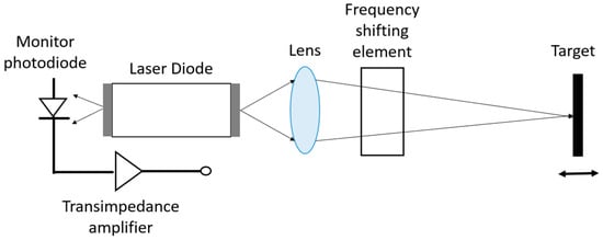 One method to improve the recovery dynamic range is to use a two-mode (e.g., two orthogonal modes) operation for the laser source. In this design, one laser mode is used to measure the target’s vibration, and the other mode is used for generating a quadrature signal (I and Q) [,]. However, this is not used in a laser diode, because generating two orthogonal modes with the desired properties (e.g., stable frequency separation) is difficult []. Therefore, this technique has not been established in miniaturized self-mixing LDVs.