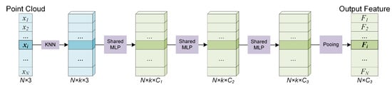 28] uses mini-PointNet to aggregate point features in local areas, and only splices the features and relative coordinates in the input layer of mini-PointNet, so PointNet++ [