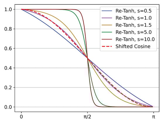 like the shifted cosine, and the shape of the function can be flexibly adjusted. As shown in Equation (