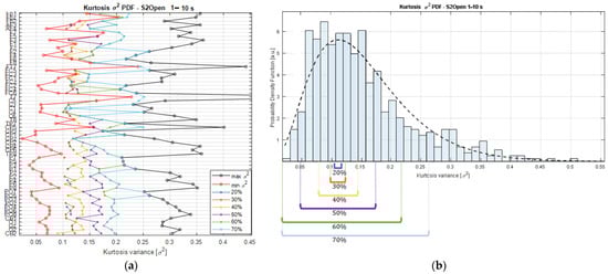Figure 2b, it is expected that the deviations in the kurtosis variance domain to be small for the narrower searching intervals, as shown for the 20%, 30%, and 40% trends in