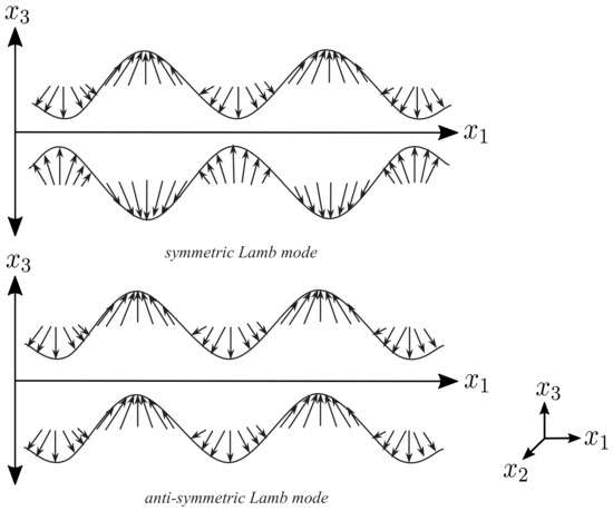 Figure 2 shows an exaggerated representation of the displacement vector field on the surface of a plate [11] for the symmetric S0 and the antisymmetric A0 Lamb mode.