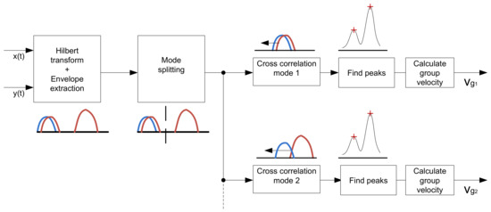 However, if the distance between transmitter and receiver is sufficiently large and a proper frequency is chosen, modes can be found and separated using a peak detection algorithm. Figure 7 shows a block diagram of the algorithm used to determine the group velocity.