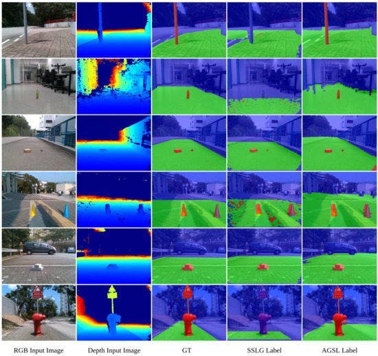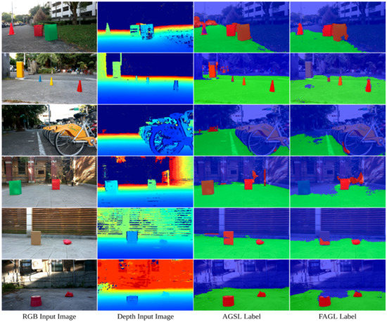 In addition, through extensive experiments, we demonstrate the proposed method achieves better performance compared with the baseline SSLG [1]. The pre-trained model of the FuseNet semantic segmentation neural network trained on our generated AGSL labels also exhibited effective and highly capable real-time segmentation of drivable areas and road obstacles using the RGB-D camera OAK-D in extensive testing. In summary, the contributions of this paper are following: