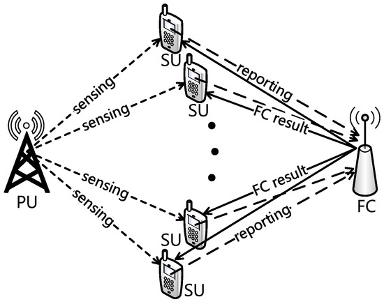- Alhamad, R.; Wang, H.; Yao, Y.D. Cooperative spectrum sensing with random access reporting channels in cognitive radio networks. IEEE Trans. Veh. Technol. 2017, 66, 7249–7261. [Google Scholar] [CrossRef]