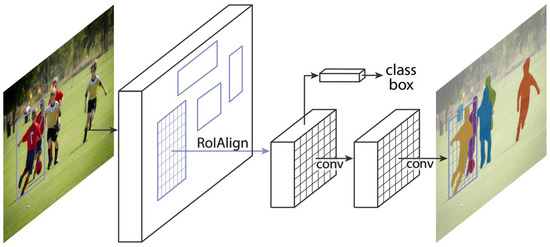 - He, K.; Gkioxari, G.; Dollár, P.; Girshick, R. Mask r-cnn. In Proceedings of the IEEE International Conference on Computer Vision, Venice, Italy, 22–29 October 2017; pp. 2961–2969. [Google Scholar]