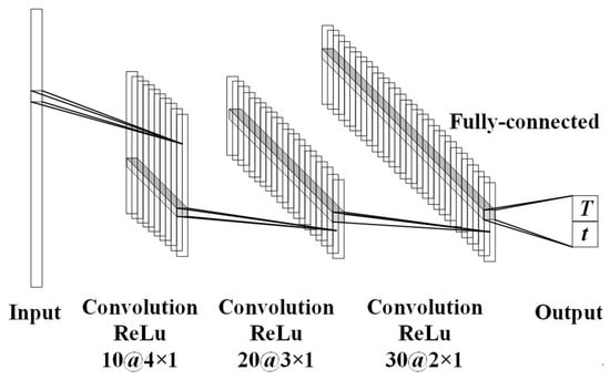 Typical ConvNets [24,25] consist of four types of layers: input layers, convolutional layers, pooling layers and fully-connected layers. By stacking these layers together, the proposed ConvNet architecture is formed. As the typical deep neural networks, ConvNet can make use of data in the form of spatially focused images [21,33]. The specific architecture of the proposed ConvNet is presented in Figure 2. Because of the strong capability of ConvNet, our approach can convert the brightness temperature in vertical polarization and in horizontal polarization with more substantial interference into the corresponding thickness t and the temperature T of the snowpack.