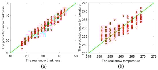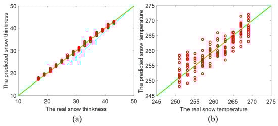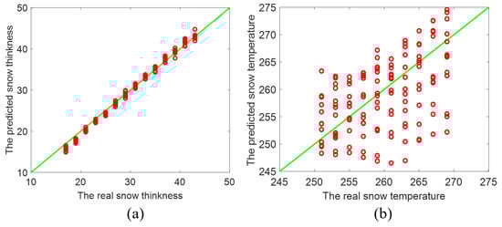 Inverted result of (a) the thickness and (b) the temperature of the snowpack by the SVM method [21,29].