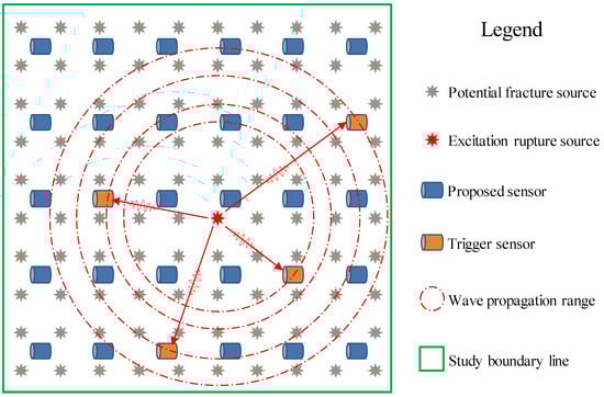 With the increase in the use of MSM systems in mines and other engineering fields, the layout of the network in the early stage of a scheme design is very important. In terms of theoretical research, the theoretical assumptions and data input factors of traditional analysis and optimization methods are dominant, and the feasibility of procedural processing is extremely low, resulting in traditional methods that are time-consuming and labor-intensive and that rely more on the experience of field engineers. To improve the rapid dynamic response of the network layout plan, based on a certain number of sensors, researchers focus on maximizing the entire monitoring range of the sensor envelope and improving the monitoring efficiency. At present, without considering the positioning accuracy and rock mass structure parameters, only a limited number of sensors have the largest coverage area and the largest envelope volume; there are few related studies aimed at improving the monitoring efficiency. A schematic diagram showing the monitoring efficiency analysis of the MSM system network layout is shown in Figure 3. It depicts the physical representation and relationship between potential sensor placement and monitoring energy efficiency.