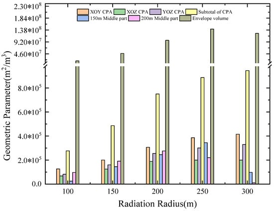 Step 4: Weighted comparison of key parameter data, such as the overall coverage area under different radiation radius conditions (coverage area in different projection directions), the coverage area of each middle section with different radiation energy levels, and the envelope volume of each radiation radius.