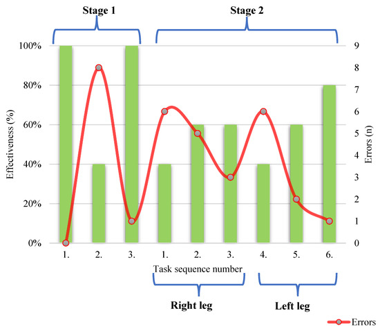 Another indicator that provides information on effectiveness is the frequency of errors during tasks, counting errors during the performance of specific tasks [,,].