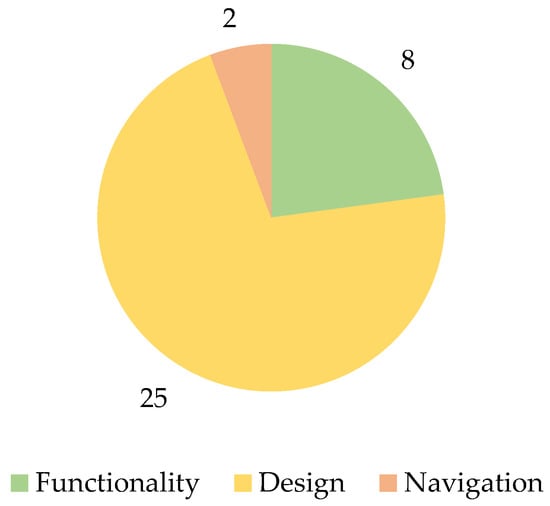 Examples of positive aspects of formatting usability of the system identified by users can be found in Table 4, where they are divided by functionality, navigation, and design, considering the results of a semi-structured interview.