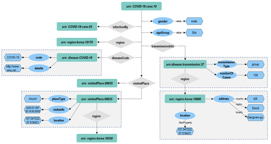 In this section, we consider a use case about the COVID-19 infection situation in South Korea. In South Korea, Korea Centers for Disease Control & Prevention (KCDC) announces the information related to COVID-19. The reports provided by the KCDC and the Korean local government include simple information about the infected person, such as gender and age, information about the place the infected person visited, and information about the infected group. Following the NGSI-LD specification, we have designed NGSI-LD entities based on the report materials.