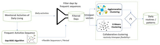 The days containing frequent sequences of activities filtered are further processed to allow the consideration of additional flexibility related to the timespan of each activity. We use a collaborative clustering technique by using parallel K-Means and Agglomerative Clustering algorithms (see Algorithm 1).