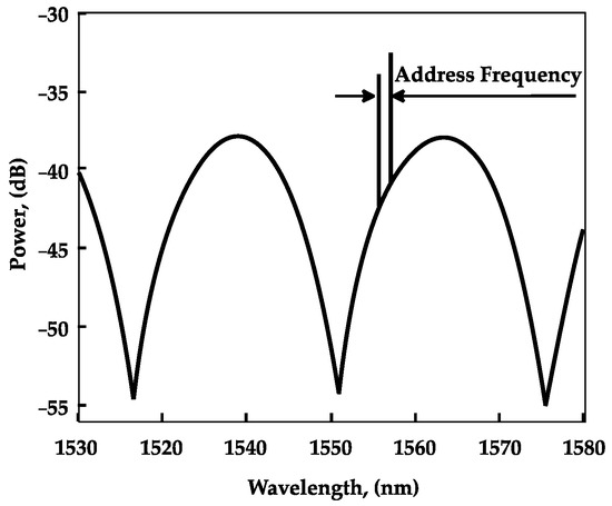 Figure 3 shows the results of the numerical simulation of the ACFOS spectral response using the mathematical model introduced above. The address frequency of ACFOS is 80 GHz.