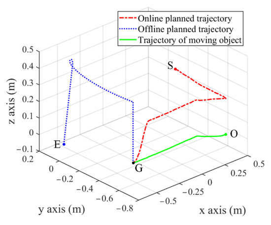 Trajectory of manipulator end-effector and moving object in experiment.