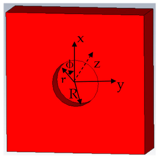 When the metal surface defect is corrosion-shaped, the coordinates of any point in the defect are (r, φ, z), and the microwave propagates along the z-axis direction. The schematic diagram of the metal surface corrosion defect is shown in Figure 2.