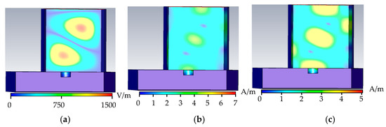 In the above formula, a and b are the length and width of the rectangular waveguide, respectively; a > b; m represents the number of half-waves of the TE wave along the x-direction; and n represents the number of half-waves of the TE wave along the y-direction. It can be seen from Equations (3)–(8) that, when the propagation mode in the rectangular waveguide probe is the TE01 mode, only Ex, Hy, and Hz propagate in the rectangular waveguide change, showing a standing wave distribution along the b-direction.